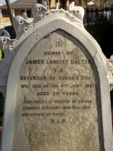 Driving down Russell Road towards town, the Russell Road Cemetery is situated on the left hand side. On the hillside in amongst what is left of the grave sites there is one that stands out clearly because of the fact that it is painted white. The grave belongs to James Langley Dalton. Dalton was a survivor of the Battle of Rorkes Drift and the recipient of a Victoria Cross.