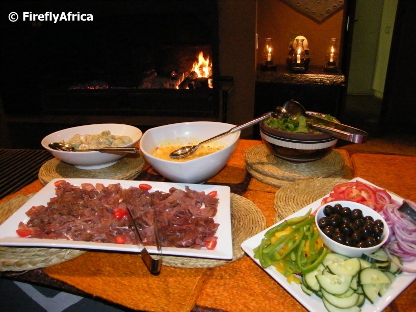 The lodges on the private game reserves around Port Elizabeth doesn’t just dish up the most amazing game sightings, but also some of the most delectable foods you can imagine. Best of all is that non two are the same. Visitors are treated to royal meals three times a day with high teas and sundowner game drive snacks in between as well. This was part of the starters we had on a visit to Pumba Game Reserve a little while ago. Springbok carpaccio with all the trimmings that go along with it.