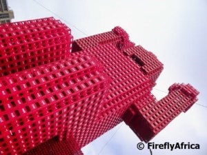 Elliot was built from 4200 (another website said 2500, so I’m not too sure) used crates for the FIFA World Cup as Coca-Cola was one of the main sponsors. It stands 18 meters high and weighs in the region of 25 tons. It was one of two built for the event with the other one being in Newtown in Johannesburg.