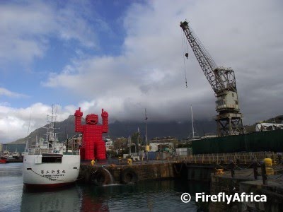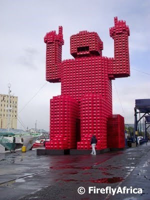Standing out (like a sore thumb) on quayside at the V&A Waterfront is Elliot the Coca-Cola crate man.