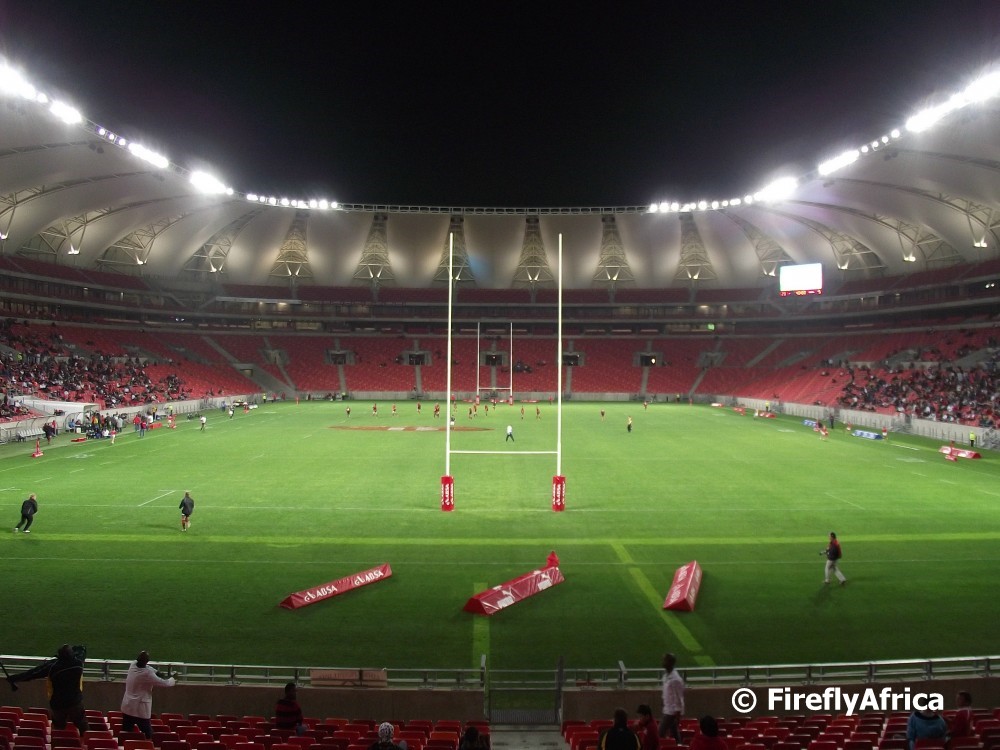 The view from behind the posts in the Nelson Mandela Bay Stadium