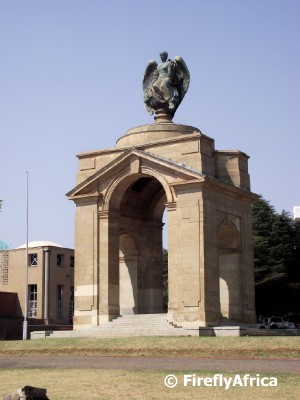 … on top of the war memorial at the Military Museum next to the Johannesburg Zoo.  The memorial is visible from the top section of the zoo.