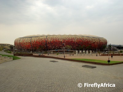 Even though most people refer to the stadium as Soccer City, as that was what it was known as during the World Cup, the official name of the stadium is the FNB Stadium.  Soccer City is situated close to Soweto on the western side of Johannesburg.  The stadium was revamped before the World Cup and became the largest stadium in Africa.  It has a seeting capacity of 94 700 people.  With it being so big one would think that some spectators would be quite far from the action, but nobody is seated more than 100 metres (330 ft) from the field, and there are no restricted views in the stadium.