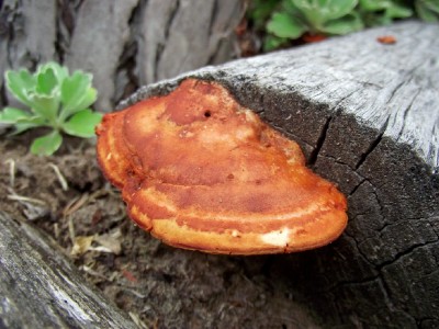 I was at a Christmas party over the weekend and found these Lacquered Bracket fungi growing on tree stumps lying in the garden at the venue.  They grow up to 500 mm in diameter and is found either singly or in groups.