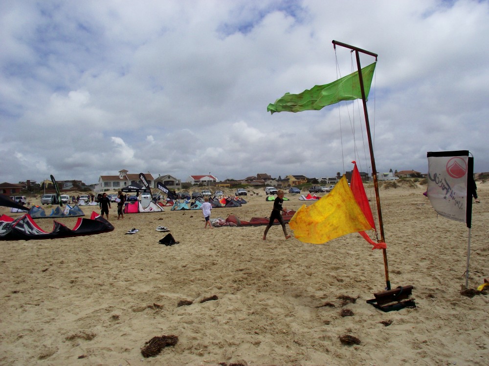 If I ever had to encounter a flag pole like this one somewhere on a deserted beach my first reaction would be to try and find the shipwreck survivors that put it up.  This particular one doesn’t belong to any stranded souls but played some kind of role in this weekend’s kite surfing at Bluewater Bay.  Probably ready, steady, GO!