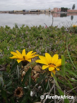 Its amazing how you often see a photo opportunity and when you go for it you find a whole host of others. I stopped on the Swartkops Road between Port Elizabeth and Uitenhage to get some photos of the old Swartkops Power Station and the flamingos on the salt pans and also ended up with little yellow flowers with the salt pans in the background.