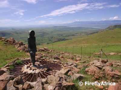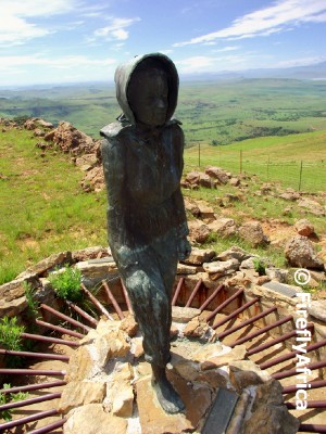 At the top of Voortrekker Passstands a monument to a woman walking barefoot over the Drakensberg.  After the Voortrekkers entered Natal, which was a British Colony in those days, in 1847, there was a number of trekkers who wanted to return to the Free State.  Susanna Smit, sister of Gert Maritz, one of the Voortrekker leaders, declared that she would rather trek barefoot back over the Berg than live in Natal under British rule.