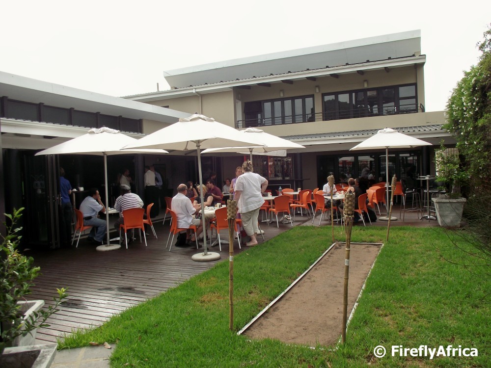 Cherry Place in Walmer is one of the many intimate coffee shops / restaurants that has been springing up all over Port Elizabeth. The premises, home to the highly successful events company Red Cherry Adventures, also houses a conference facility. One of the activities they offer is fire walking which is done on the fire walking pit (looks more like a strip to me) in the picture.
