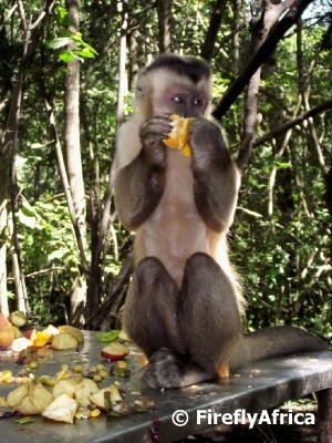 The Tufted or Brown Capuchin (Cebus apella) are probably the best known of the inhabitants of Monkey Land. They are often used in movies due to their high intelligence. They were also the monkeys that was used to play music boxes and then go around to collect money.