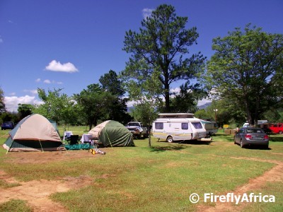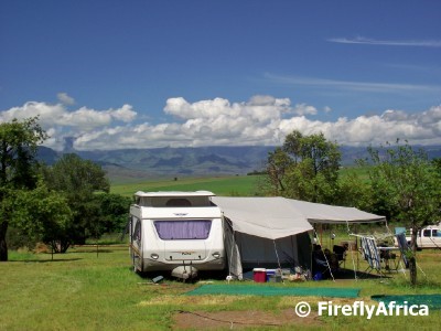 Drakensville is divided into a campsite as well as self catering units. The camping area is quite big and set on an expansive piece of land with nice grassy camp sites. The sites on the one side of the resort has wonderful views towards the mountains and Amphitheatre in the distance. Unfortunately covered in clouds in the photo.
