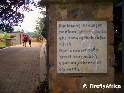 Interesting! Love the gate! I have the same poem in my garden – it was suppose to hang on the wall but I've now used it as a stepping stone in a pathway (trying to make it not look like a little grave! – almost succeeding! Beautifully colourful bird!