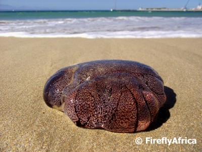 Drama Princess has developed a fascination for jellyfish washed up on the beach. She was even more intrigued when we found this peculiar purple one on the beach in Mossel Bay.