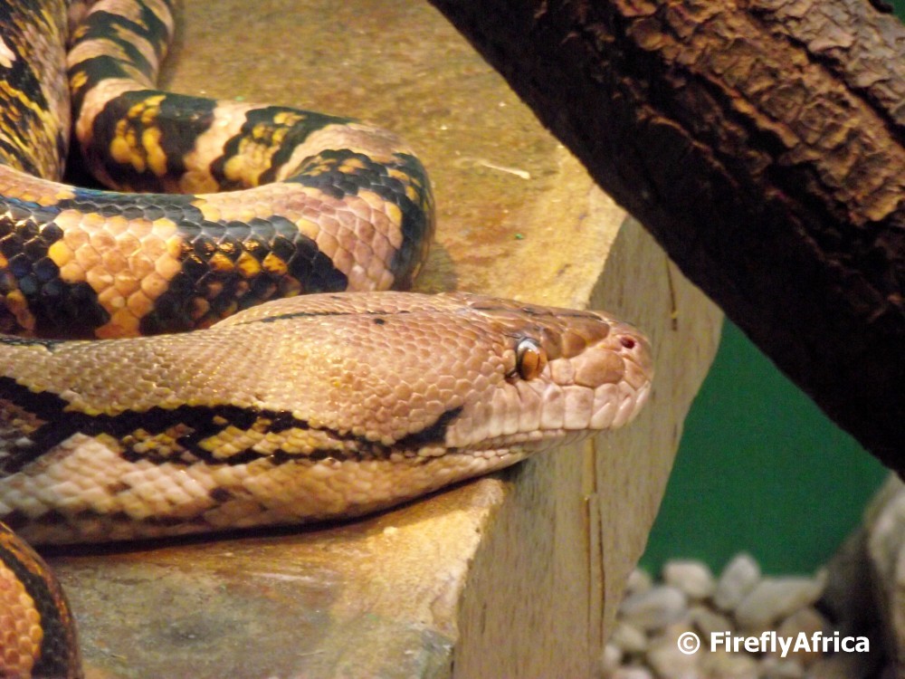 The Reticulated Python is one of the Snake Park at Bayworld’s prized snakes. Out of all the snakes on display she probably got the most attention and comments by the kids that we took to the Snake Park for Chaos Boy’s birthday party.