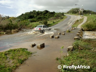 We may be coming out of a drought, but when it rains it pours.  The low water bridge over the Baakens River at the 3rd Avenue Dip floods very easily and so it was the case again with all the rain we had this weekend.