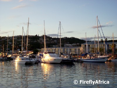 Most visitors to the town of Knysna on the Garden Route end up at the Knysna Quays Waterfront at one time or another.  The Knysna Quays consist of a small boat harbour, an area with shops and restaurants as well as very upmarket houses and apartments.  Yachts are moored all around the waterfront both inside the small boat harbour as well as outside in the lagoon.  As the Knysna Lagoon is one of the main attractions in the town, there are a number of charter boats, ferries and catamarans that depart from the waterfront on cruises of the lagoon.