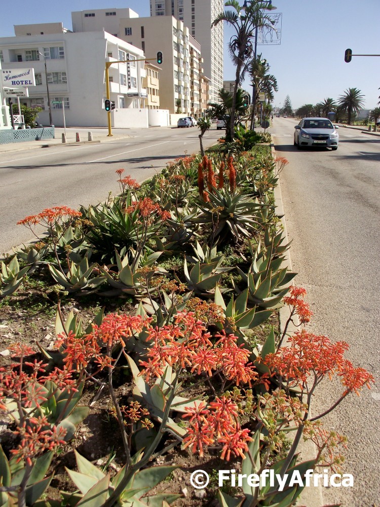 I had to take a couple of photos around Marine Drive on the Port Elizabeth beachfront for somebody the other day.  Now taking photos of a road isn’t the most interesting and exciting project, but I did find these coral aloe in bloom on the middle man in front of the Humewood Hotel.