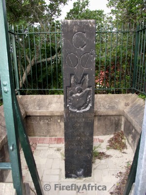 During 1778, Governor Joachim Baron van Plettenberg visited many of the outposts throughout the Cape Colony.  He arrived in the bay, then known as Bahia Formosa (Beautiful Bay as named by early Portuguese explorers) on 5 November 1778.  After inspecting the bay and surrounding area, he erected this slate possesional stone indicating that the bay henceforth would belong to the Dutch East India Company.  From that day on the town also bore his name, Plettenberg Bay.
