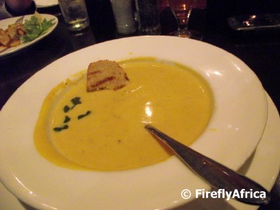 Our waiter Tyron came by with the menus and gave us a couple of recommendations.  What I specially liked was how he has had just about all the items on the menu himself and could describe it all to us whenever we had a question on an item.  Often I find that waiters have never actually tried the items on the menus themselves and he told us that it was the owners policy that the waiters had to know the food they serve to be able to give you first hand information.  For a starter I decided on the Butternut Soup while the Damselfly had a Starter Calamari.  The soup was perfect and most importantly, hot.  I just hate getting a soup on my plate and its only luke warm.  The Damselfly remarked how the starter calamari didn’t come with the normal tartar sauce, but with a sweet chili sauce.  Although she found it unusual, it turned out to be the perfect compliment.