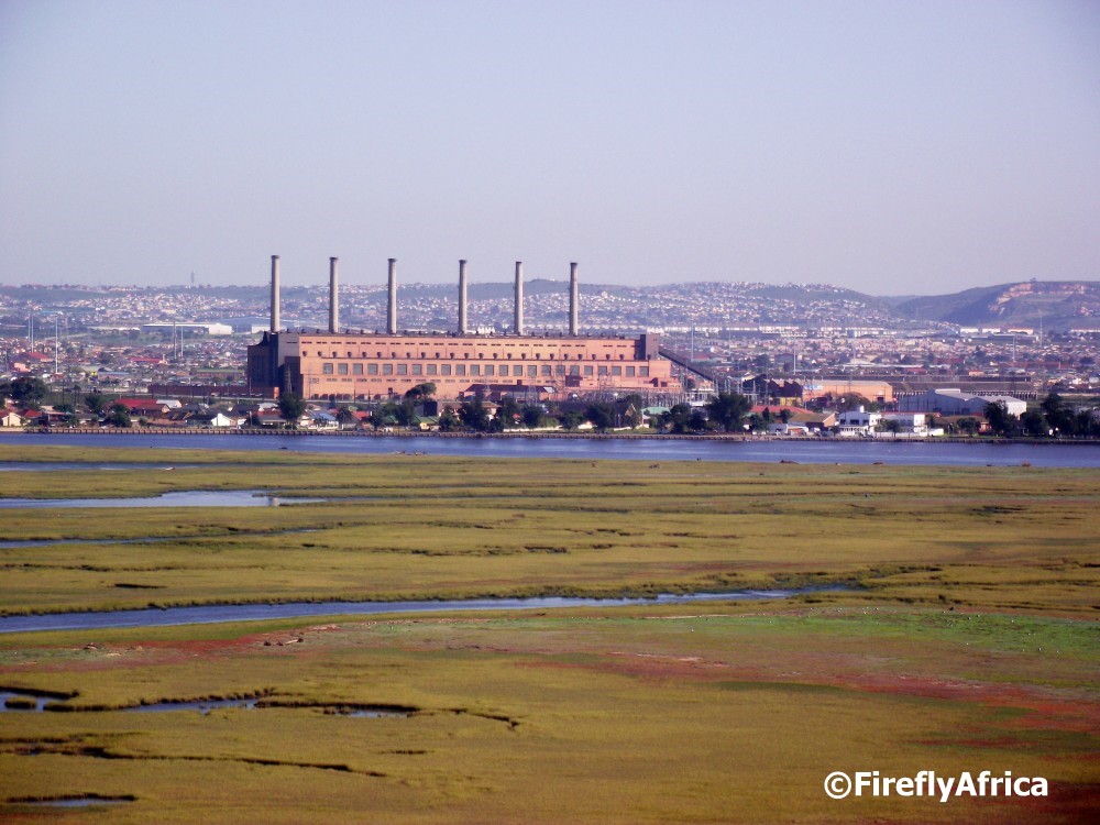 Standing at one of the view points on the Aloe Trail in Bluewater Bay there are great views both up as well as down the Swartkops River. Looking across the river you can see the old Swartkops power station with townships and Northern areas in the background.