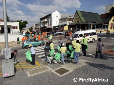 The turnout for the cleanup was surprisingly big with employees of NMBT being joined by the Mayor of Nelson Mandeal Bay, stakeholders and product owners in the tourism industry, the South African Police, various church representatives and many others. The group gathered on the Donkin Reserve where everybody were supplied with refuge bags and gloves and from here moved towards Fort Frederick cleaning up along the way.