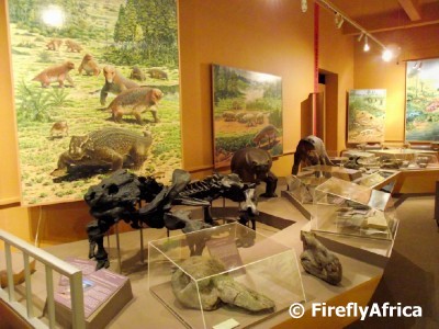 Chaos Boy came into his element when we entered the dinosaur and fossil exhibition area.  The majority of the fossils here were found in the Eastern Cape and the exhibit includes a reconstruction of the first dinosaur discovered in South Africa, Stegosaur Paranthodon Africanus.  Another interesting part was the fact that there is a real life archaeologist working on real fossils who called us over and explained to us what he was doing.