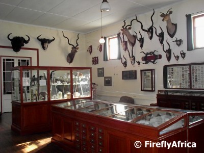 The museum’s main theme covers the natural science and the natural history of the Eastern Cape and include earth sciences, archaeology, insects, birds, mammals, and plants.  A notable exhibit is a portion of one of the Gibeon meteorites which fell around Gibeon in Namibia approximately 600 million years ago.