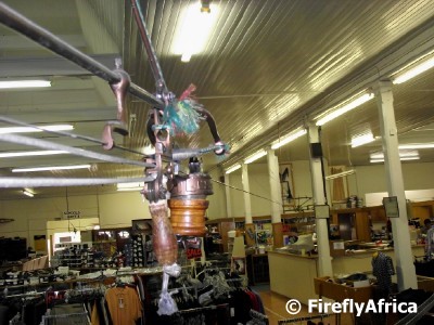 As I was explaining to Chaos Boy how the system worked, one of the shop assistants stood closer and asked him if he would like to see how it works.  Do birds have wings? I picked him up and he pulled the lever closest to us in the photo.  The front section pulls back to spring load before it shoots off along the cable to the central cashier point.  Just more proof that its always possible to find something interesting to show a child, doesn’t matter where you go.