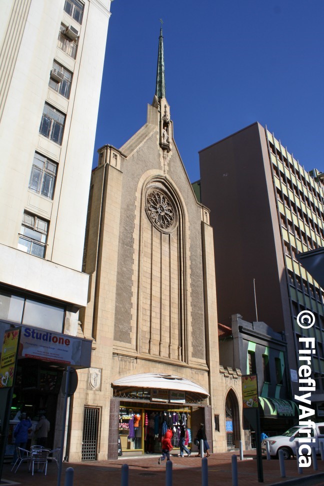 Visitors from out of town are usually very intrigued with the front view of the St Mary’s Anglican Church in the Port Elizabeth city centre. If you go up the side road you will see the whole side and back of the church, but from the Govan Mbeki Avenue (Main Street) side it looks like the church is wedged between a couple of high rise buildings.
