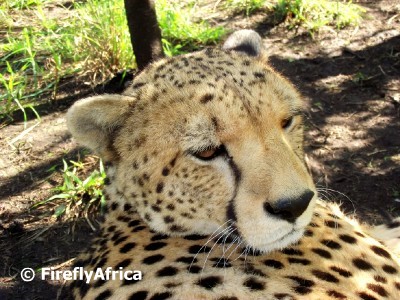 Its not like you can just walk up to a wild animal and ask them to sit still for a little while you try to get a closeup of them. Our cheetah interaction experience at Inkwenkwezi Game Reserve outside East London did give me the opportunity to get such a shot of one of their cheetahs. A cheetah’s spots are unique like finger prints and no two cheetahs are exactly the same.