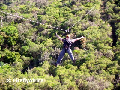 Its not easy describing the feeling of ziplining, specially when you, like myself, afraid of heights .  You are slightly nervous when you get clipped onto the first cable.  Your heart starts beating faster and you really only hear the essentials of what the guide tells you before putting your weight onto the cable.  Deep breath… push off… and … absolute freedom as you glide across the valley.  Once you have done the first one the fear and nervousness are gone and you can’t wait to get onto the next slide.  Absolute awesomeness.