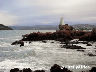 The beacon on the rocks at the Eastern Head is one of two beacons (the other one is on Leisure Isle) that are used by boats to navigate through the dangerous entrance of the Heads into the Knysna Lagoon.