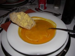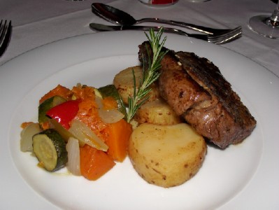 Dinner was a la carte and my choice was a starter of Butternut Soup followed by Smoked Salmon and salad. My main meal was steak and vegetables and dessert consisted of White Chocolate and Berry Mousse.