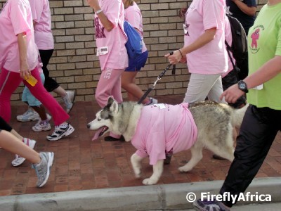 Pink (Breast Cancer)I just learned that there are various colors for specific cancers. The Husky seems to be enjoying himself.