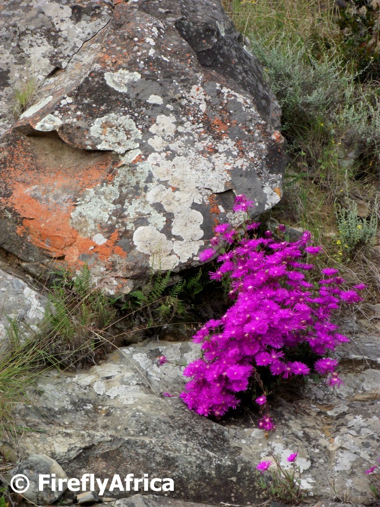 Purple vygies, green grass with white(ish) and orange moss growing on the grey rocks.  Pity I didn’t get more yellow flowers in the shot like those on the left.  Isn’t nature and its natural colours amazing?