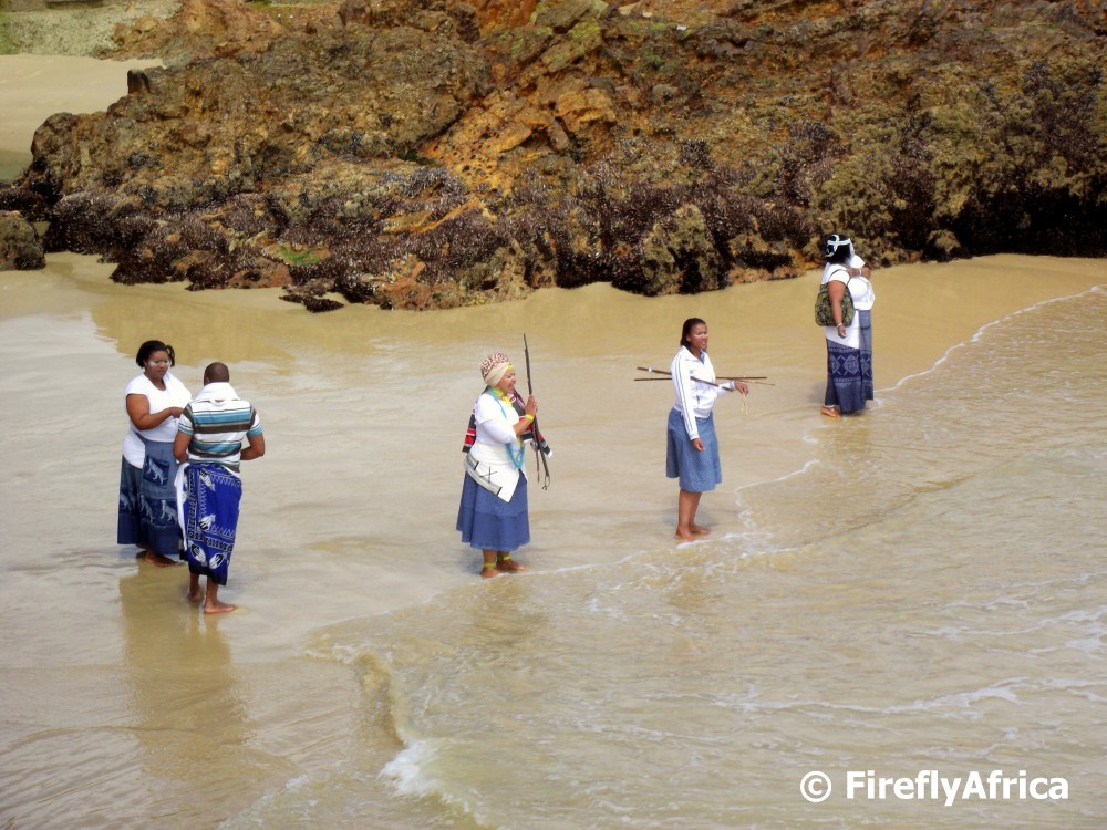 We approached and respectfully waited for them to finish before we asked them what they were doing. They were traditional Xhosa healers performing a ceremony whereby they talk to God and their ancestors. The Xhosa are Christens, but they also believe in their ancestors and that they ancestors watch over them as well. Even though they go to church on Sundays they also come to the ocean at times to connect with God and the ancestors without the congregation around them. During the ceremony they also throw beads and coins into the ocean as offerings to their ancestors while asking for their blessings.
