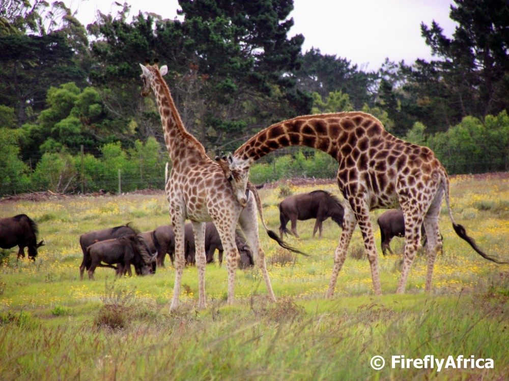 I’m not sure what this giraffe at Kragga Kamma Game Park outside Port Elizabeth was trying to do. Looking at the pic he was either scratching his head or trying to prod his smaller companion into moving.
