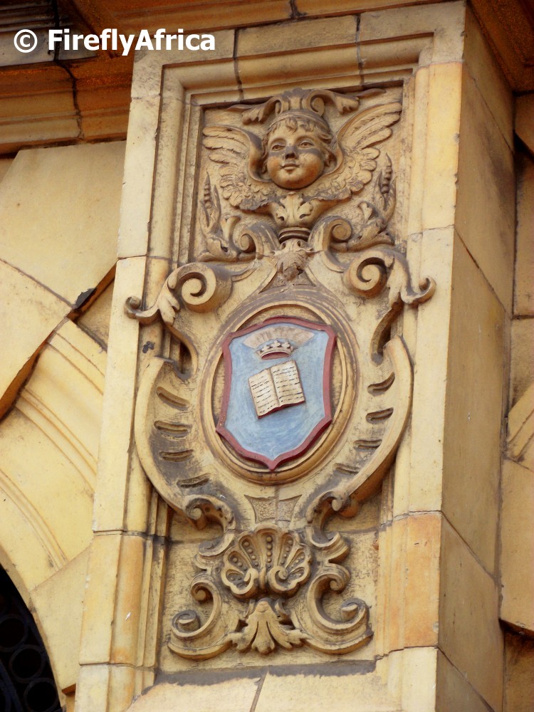 One of the, at a lack of a better word, features on the historic Public Library in the city centre with what looks like an angel on top and a book in the centre.