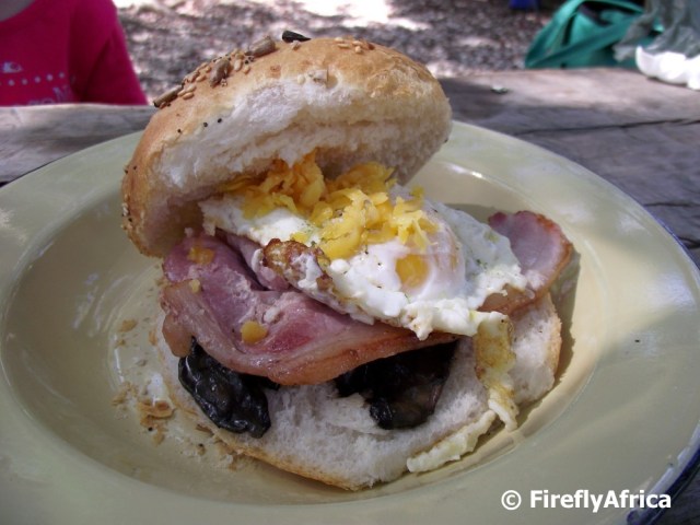 Our highlight of the market was the breakfast stall. They do a breakfast roll on a seed bun and if you take a full house it consist of mushroom, bacon, egg and cheese. It comes in a tin plate and you can have a tin mug of coffee with it. Oh man, lip smacking. Seating are at wooden benches and logs and from there I watched the ladies working behind the stall motor between preparing the food and dishing up. They were by far the busiest stall there as most people had breakfast in between their shopping (or just browsing if your wallet is a bit empty).