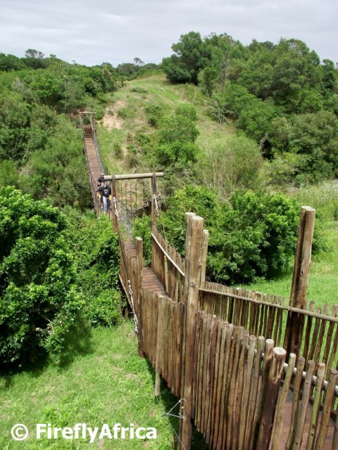 Suspension bridges always remind me of Indiana Jones and has a sense of adventure to them. This one may not lead over a chasm, but still. One can use one’s imagination. The suspension bridge in question is right next to the Bush Cafe at Kragga Kamma Game Park and forms part of the Monkey Walk.