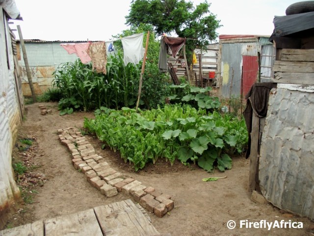 It’s so easy for us to go to the local supermarket or fruit and vegetable shop to buy some fresh veg for dinner, but what do you do when you don’t have money to just go and buy left and right? Vegetable gardens are a fairly common sight in the townships and some people put a lot of effort into theirs. This little vegetable garden stands behind a shack in Ramaphosa Village and at first glance you can see spinach, pumpkin (or butternut) and corn.