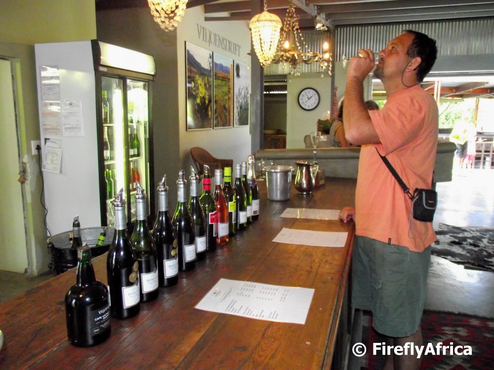 I’m not a big wine drinker, not by a long shot, but I really enjoy wine tastings.  Sometimes I can pick up the fruity (or chocolate or chili or whatever else) fragrances and tastes that they say you are supposed to taste in your mouth, but being somebody who prefers a sweet wine I often just try not too pull my face.  Viljoensdrift has a couple of very nice wines with my favorite being, surprise surprise, their dessert wine.