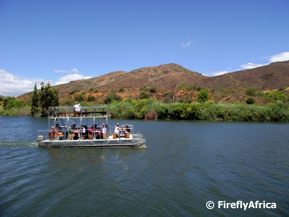 There is probably no better way to enjoy the Viljoensdrift wines than leisurely cruising along the Breede River on a sunny day. The Viljoensdrift wine estate offers one hour cruises up and down the river from their shop and tasting area on the farm and although we’re not wine lovers (and you don’t have to actually drink wine to go on the cruise), we decided to go for the outing.
