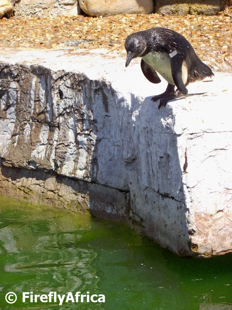 Watching the penguins in the pool enclosure at SAMREC (South African Marine Rehabilitation and Education Centre) at Cape Recife can be very interesting and often makes for great photos. This youngster was sitting in the sun on the rocks and decided to dive into the water. As he got to the edge of the rock he leaned forward for a look before taking the plunge. I noticed that they all did it before diving. Perhaps just making sure there aren’t any sharks lurking in the deep.