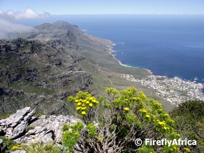 One a clear day from the right spot one can see just about all the way down to Cape Point, but in general you have spectacular vistas over the city, Clifton, Sea Point, the V&A Waterfront, Table Bay, Robben Island, the Cape Flats and the Cape Peninsula.  You will also see Lion’s Head, Signal Hill and Devil’s Peak mountains while on the western side there is a great view of the Twelve Apostles.
