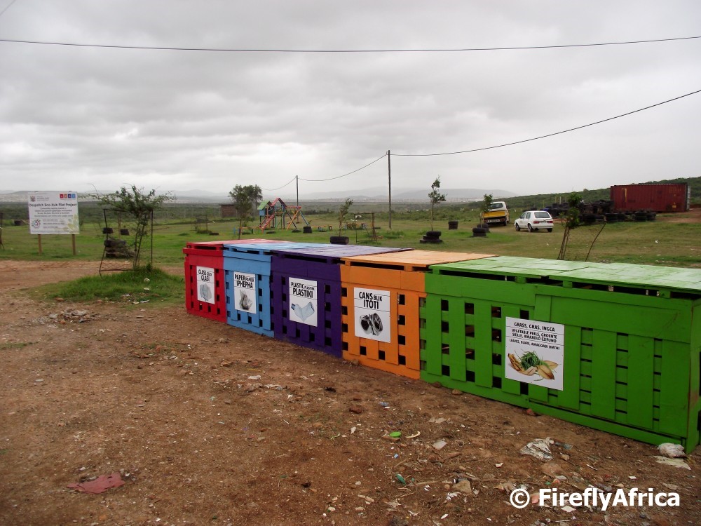 The Uitenhage Despatch Development Initiative (UDDI) recently established their first Eco-Hub as a pilot project in the Despatch township of Khayamnandi. The project is about “transforming hot spots into green spots” and involves the empowerment of members from the local community to do something for themselves, their community as well as the environment. One of the components of the project is a recycle station where residents can separate glass, paper, plastic and cans with a fifth bin for grass cuttings that are used in the making of compost.