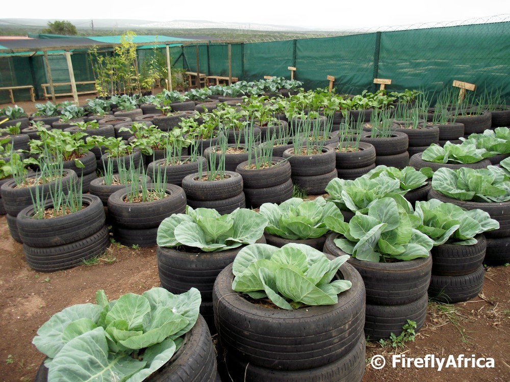 One of the main projects at the UDDI’s Despatch Eco-Hub is a very innovative tyre garden.  Two tyres are fixed onto of each other, filled with soil and veggies planted in them.  It a great way to recycle tyres as well as establish a veggie garden where the soil may be of bad quality or there may not be enough space for a garden.  They can quite easily be moved around as well.  The other thing tyres are used for at the Eco Hub is the making of compost.  Three tyres are fixed together and closed up at the bottom with a piece of wood.  The tyres are then filled with grass cuttings and other plant and left over food material, closed up with a lid and left to decompose.
