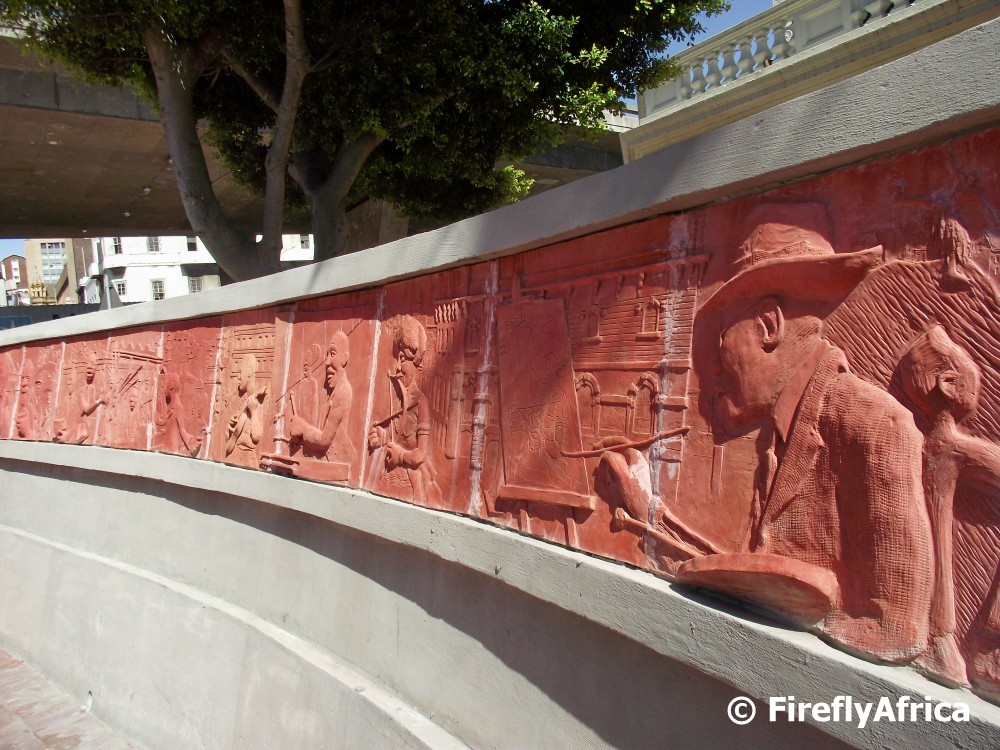 One of the new art pieces that has been installed on Route 67 is a freeze by artist Mpumzeni Ezra Gwazela. The freeze represents the proud history of creativity in Nelson Mandela Bay and the Eastern Cape and is located just outside the entrance of the Campanile which is also the start of Route 67.