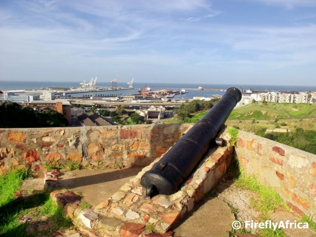 Late afternoon at Fort Frederick looking east towards the Port Elizabeth harbour and Algoa Bay beyond.  The fort, which is the oldest building in Port Elizabeth, was built in 1799 to protect the Bay from invasion and was the first permanent stone structure to be built by the British in Africa south of the equator.