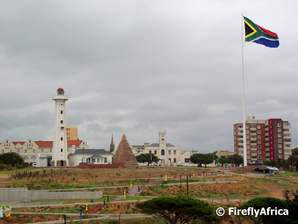 I have posted a couple of pictures in the past that included the enormous flag pole and South African flag standing on the Donkin Reserve and whenever I tell people that the flag is about as big as a tennis court they tend to look at me in disbelief.  Well, viewing the Donkin Reserve from on top of one of the buildings in the city centre the other day I could actually photograph the flag and put it into a better perspective
