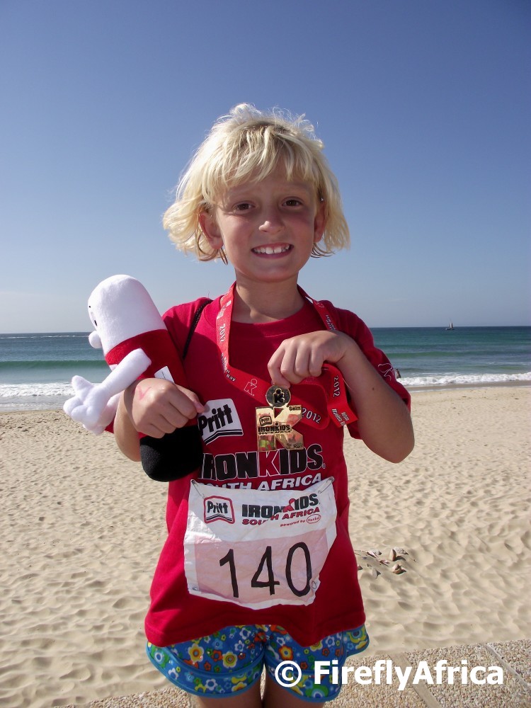 On Saturday Drama Princess participated in her first Ironkids South Africa and we are so proud of her for doing it.  She has been parading her medal for everybody to see for two days now, even showing it off in church on Sunday and going to the headmaster’s (who has participated in Ironman himself) office at school and show him.